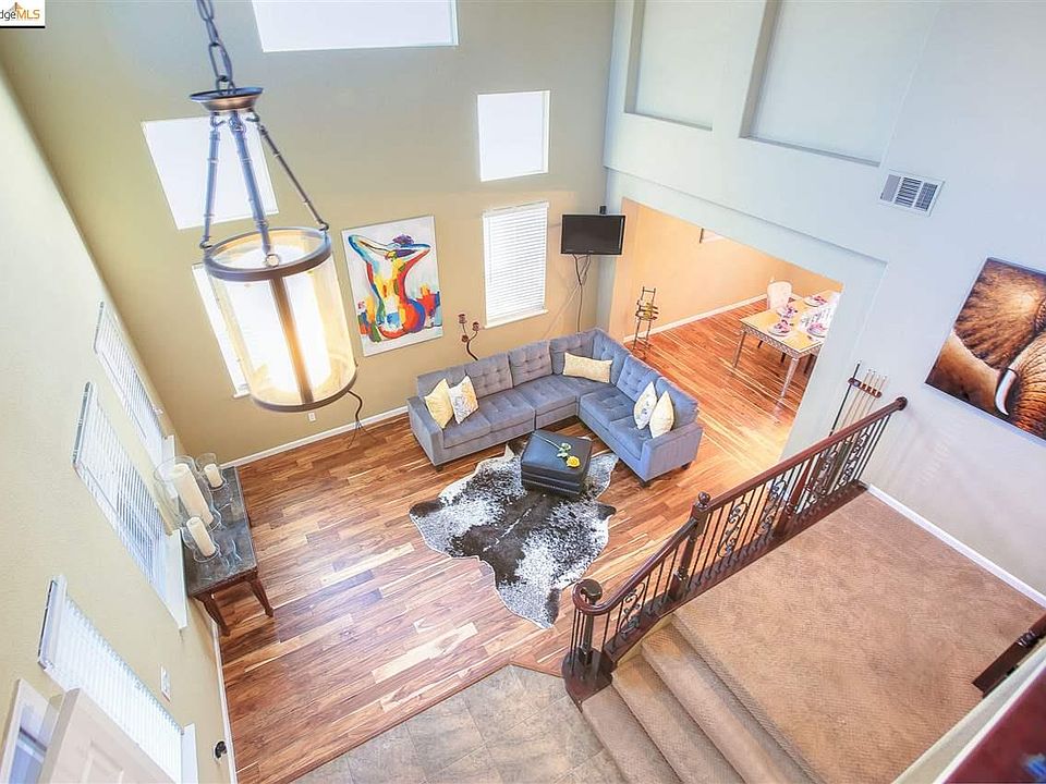 Paid Solar Gorgeous property. amazing setting! Beauty awaits as one drives onto the lovely street of Da Vinci Ct. Fabulous floor plan & stylish upgrades,large lot 7100 sq ft & over 3400 sq ft, of living space with 5 bedrooms, 3 baths,bonus den, boast ceilings.The grand foyer opens to the formal living room & a elegant dining room. Spacious granite counter top chef kitchen has a center island perfect for entertaining w/ many amenities & an inviting breakfast nook with views to the private rear yard. Large family room with a fireplace, built-in surround sound/media niche. Home theater for family movies. The private master suite is a delightful retreat, walk-in closets & spacious master bath. Jr master suite on lower level with full bath, very private. Beautiful curb appeal & architectural detailing,hardwood flooring and custom moldings, Fireplaces, 3 car garage. Lovely grounds, Come and enjoy the meaning of home sweet home.Full SOLAR paid in full. Close elementary and middleschool