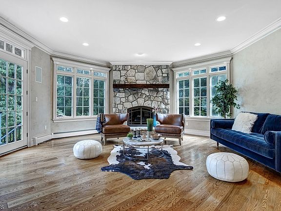 Resting on over half an acre, this impressive 4 bedroom, 5.5 bath home sits on beautifully landscaped property & provides complete luxury living. This gorgeous home offers close to 5000 sqft of grand space. Designer kitchen w/ furniture quality cabinets, stone counters, high-end SS appliances. Formal dining rm has a 2-sided fireplace open to adjoining office. 1st floor in-law suite w/ en suite bathrm. Custom bar in first floor game rm. Master suite incl gas fireplace, 2 large walk-in closets, raised ceilings, spa-like master bath & separate sitting rm. Lower level features large rec rm, walk-in closet & entrance to outfitted heated Tek garage. A deck & two patios overlook the manicured yard w/ saltwater pool & hot tub. Speakers throughout & Full generator.