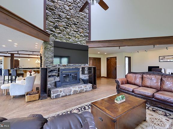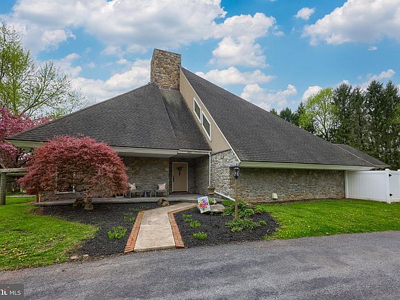 Unique, contemporary four-bedroom, three full/two half bath home tucked away in a quiet location just north of Lititz and close to Brickerville and the well-known Brickerville House Restaurant with a great dining menu. Peace and solitude will be yours on this nearly six-acre property that includes an above ground pool, pasture with run-in shed, and an outbuilding that can be used for entertaining family and friends or so much more. Showcasing the home is a massive floor to ceiling stone fireplace and a very large second floor loft that has many possibilities. If you work from home or run a home business, the loft is perfect, or use for everyday living space. The loft also opens to a balcony with serene views of the backyard and a variety of fruit trees. With a built-in stone pizza oven, the back patio off the kitchen is another wonderful spot for outdoor gatherings. Off the primary bedroom, you will enjoy a private patio with a hot tub. Another bedroom offers a balcony, and one of the other bedrooms hosts a cool loft reached by a built-in ladder. The space in this home is endless including a finished lower-level rec room with a projector for movie night. Other amenities of the residence include an efficient geothermal system and a central vacuum system. The property provides plenty of space for parking inside and outside the garage and on the circular driveway. The property is in a secluded setting, yet you are not too far from Route 501 and Lititz. Do not miss the serenity that can be yours! Call today for a tour.
