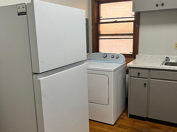 This unit features hardwood floors throughout, making cleaning a breeze. Also included are all appliances: a refrigerator, stove, and a washer and dryer.