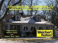 Enter this inviting Flemington home through the oversized garage or stroll along the pavered walkway to the front entrance accented by perennials, stone landscaping and a white picket fence. United by beamed ceilings, the living room and dining rooms are open for ease of entertaining. French doors provide entry into an all-season sunroom, boasting a volume ceiling with skylights and six exposures. The kitchen has generous Corian work surfaces, hardwood floors and a large eat-in area. Nearby on the first level, laundry and powder rooms provide access to the oversized two-car garage and a patio ideal for al fresco dining poolside. Upstairs, the master houses its own bath with a soaking tub and skylight. A second bedroom shares the hall bathroom and reveals a large double walk-in closet. A third bedroom lies tucked in its own wing. Outbuildings on the property include a barn with stall and tack room and heated carriage house with a loft, currently used as an office and having potential as an in-law suite.