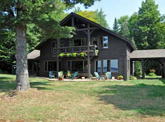 DEERWOOD Wonderful year round and private Upper Saranac Lake waterfront home that is situated on almost 2 full acres. This home has a bright open kitchen, custom woodwork and a double sided fireplace that faces both the living room and den. There is 190 feet of sandy bottom water frontage for swimming, dry storage boathouse with open, sunny deck top and the 3 car garage has potential for guest quarters. There is also a well maintained tennis court with lights. Beautiful lake and mountain views!