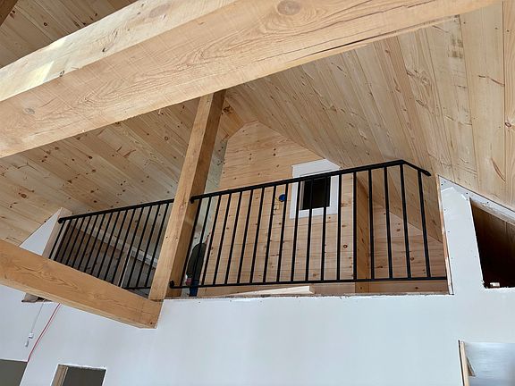 Construction is coming to a finish! Ooh- BRAND NEW! This home was thoughtfully designed and is being built with attention to detail. The building contractor of this home has been in business for over 50 yrs. Built to resemble a Vermont vintage barn but with a real touch of modern. Feast your eyes on the lofty cathedral ceiling & balcony in the open concept kitchen/living area which also boasts massive VT. crafted beams and posts as well as a bank of doors and full length windows that lead to a delightful stone patio where you'll enjoy close views of Elmore Mtn. Gather around the copious, handcrafted kitchen island for conversation & daily fare. Stainless Steel appliances come with the package! A convenient laundry room is located just off the kitchen & includes a full-size, stacked unit, washer and dryer. Each level has a bedroom and bath. Enjoy authentic wood, brick & ceramic tile floors. A rustic porch covers the main entryway where you'll find a welcoming, mudroom area w/a coat closet. Located just 5 minutes from Lake Elmore beach and boat access. The Copley hospital & golf course are in walking distance. Our thriving downtown, home to coffee shops & eateries, is 4 minutes away & our famous Lamoille Rail Trail for X/C Skiing, Biking & Snowmobiling is accessed in the heart of the village. Floorplan is attached and may vary just a bit from the actual home. . Municipal water and sewer. Located in village limits. Owner is a VT. Licensed Real Estate Agent.