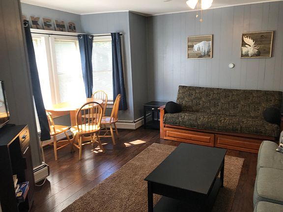 All redone 1 bedroom apartment in Ludlow Village and looks at Okemo Mountain. Sleeps up to 4. Pets are negotiable. Full kitchen and bath. Fully furnished and decorated. Utilities are included. Awesome location with off-street parking and you are in walking distance of the restaurants, bars, coffee shop and stores. On the free Okemo shuttle route. Timeframe is flexible. $8,500 for the 5 month season. Email with questions and set up to view property. 5 Month Winter Rental includes heat, electric, WiFI and plowing.