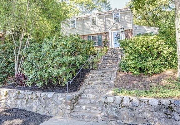 An amazing 3 bed 2 bath home steps away from Newton North High School and Newtonville Square. This home is situated on a unique and very private lot. Enjoy the tranquility and privacy of this tree lined back yard and patio. This home featuring an eat-in kitchen, a spacious dining room, gleaming hardwood floors, a first floor bedroom or office and a great living room that is open to the family room with access to the beautiful stone patio and stunning yard. The 2nd floor features 3 great size bedrooms and a master bedroom with a walk-in closet and access to the walk-up attic. The basement features great ceiling height, laundry, 2 car garage access and a semi-finished bonus room with a fireplace. The property requires some updates, but provides an amazing opportunity to be a great family home.