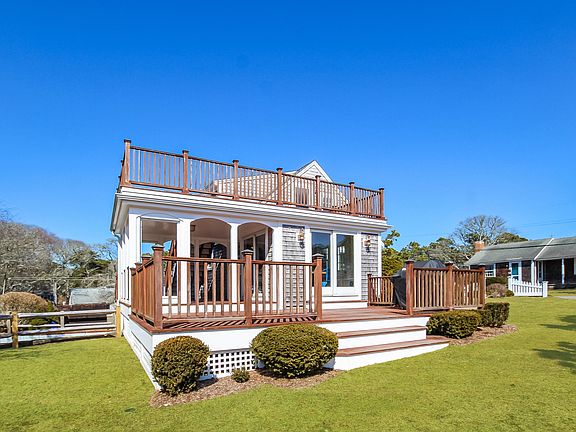 Fantastic sought after Chatham location!! Water view 5BED/3BA Cape in Bucks Creek Association with deeded rights path to bridge over to private beach on Nantucket Sound. First floor is open plan sunny living room with stunning stone fireplace. Light and bright dining room accommodates large groups with sliders to deck and screened porch. Kitchen island and SS appliances, great layout for entertaining too. Master bedroom 2nd FL has door to deck to enjoy the view, all bathrooms updated, move in ready. This charming updated Cape has Air conditioning, gas heat, 2 decks, a screened porch, outside shower and everything you need for wonderful Chatham lifestyle including fire pit area in large .51 Acre yard. Front roof new 2018, Interior paint work done, newer replacement windows, landscaping improvements. Great summer rental history. Sold furnished turn key. Buyers and agents to confirm all information.