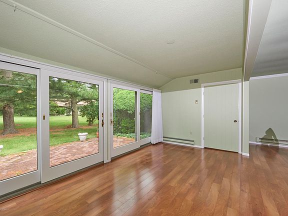 Pristine and beautifully updated Ivy ranch w/a garage situated in a very pretty and quiet location.Unit includes a modern kitchen w/stainless steel appliances a skylight overlooking an open concept living room / dining area plus a sunroom w/ slider doors overlooking lush landscaping and an idyllic backyard . Enjoy beautiful, gleaming recently installed quality floors throughout the home, recessed lights, spotless and updated bathrooms, plus a newer air conditioner 3 years.Spacious master bedroom incl. updated bath with shower stall and walk in closet. Second bedroom is spacious too and both have abundance of natural light with sliding glass doors. Lovely location w/additional ample parking spots nearby. The lake nearby walking paths are a short distance away. BEAUTIFUL!
