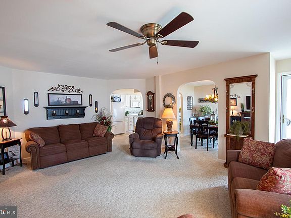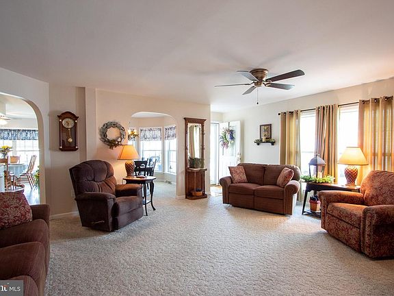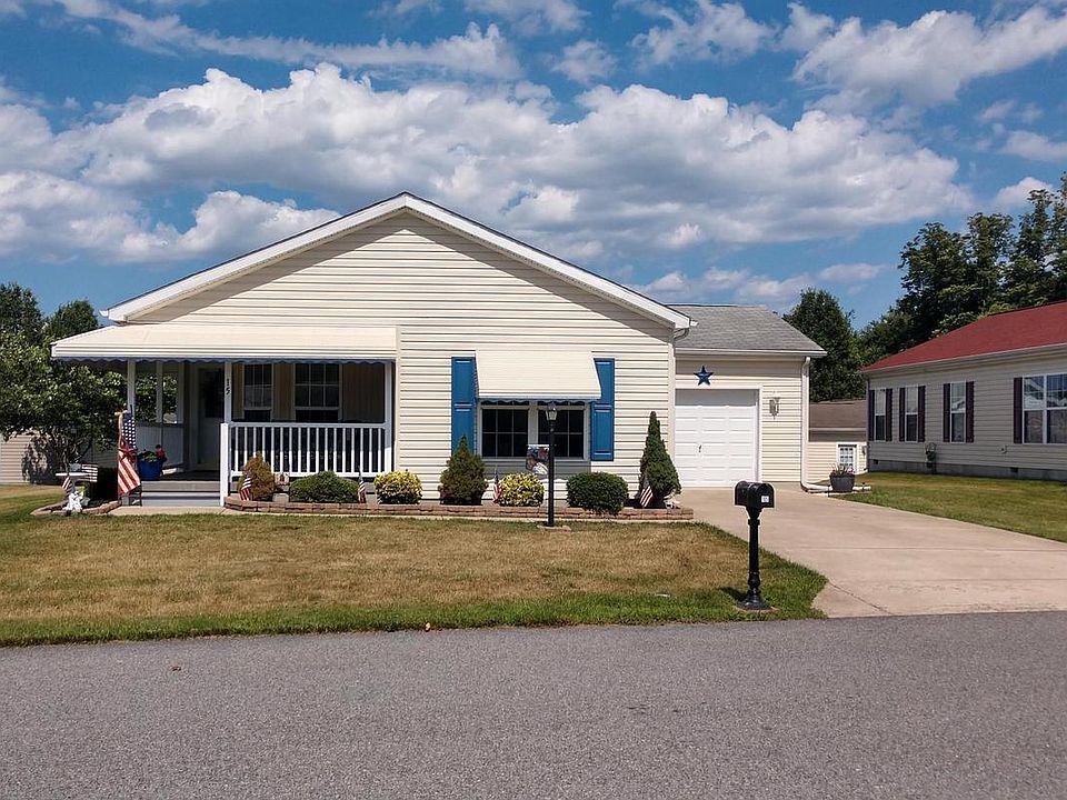 Barclay Farms Kent County's premier 55+ active lifestyle community! This stunning Saratoga model home has been carefully and thoughtfully maintained. Featuring an ample, well appointed kitchen with pristine white cabinets, center island, breakfast nook and all appliances included, generous living room plus formal dining room, two comfortable bedrooms including the primary bedroom with an on-suite bath, whirlpool tub, walk-in shower and double sink vanities, open airy covered front porch, and a one car garage. Immaculate and move-in ready! Community amenities include: pool, clubhouse, fitness center, spa, library, game rooms, walking paths, catch & release fishing pond, fitness classes , various clubs & other activities to enjoy. Land lease $524.70 per month includes all community amenities, lawn maintenance, trash removal, road maintenance & snow plowing. Quiet setting conveniently located in Camden Delaware just a short drive to shopping, restaurants, healthcare, and the Delaware beaches