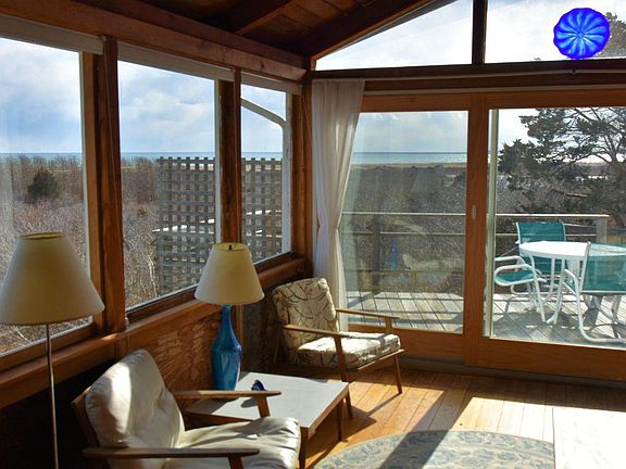 You can ''see for miles and miles and miles and miles'' from this uniquely located Chilmark beach cottage that includes deeded access to 7 acres of pristine South Beach on the Atlantic Ocean! 180 degree water views looking easterly over Chilmark Pond, to the Barrier Beach and beyond and westerly over the Atlantic to Nomans Land. Simply Stunning! Colorful Sunsets! The cottage is a cozy camp with beach stone fireplace; used seasonally. This is a ''one of kind'' south shore location that is not often available for purchase. Short distance to the shores of Chilmark Pond from the cottage where you can wade across, in the summer, to the boardwalk that leads to your private access to South Beach! Included is an approved septic design for a 3 bedroom system. Enjoy the ''camp'' as it is or use your vision to rebuild/remodel. A special place on this beautiful island.