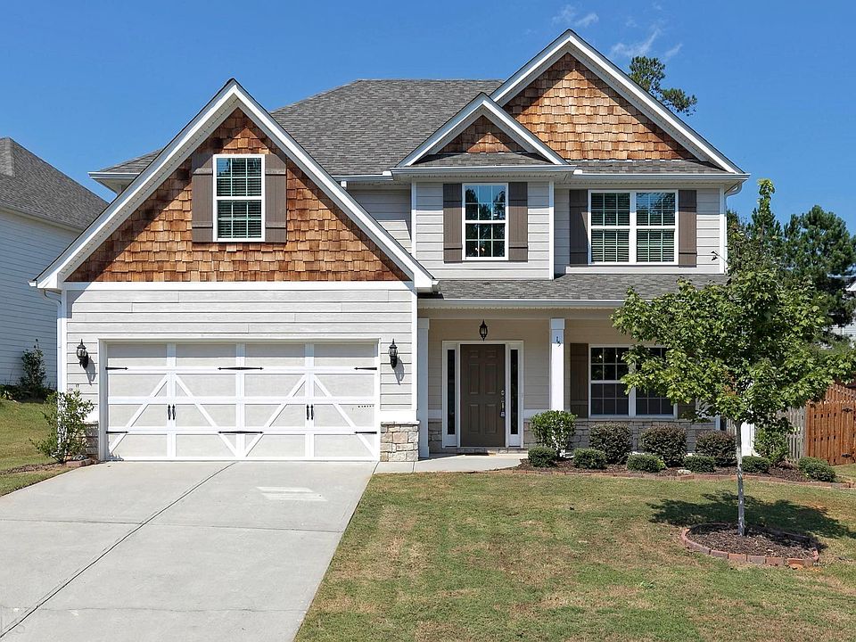Gorgeous home with open concept and upgrades throughout, Open door 2-story foyer and hardwood floors throughout main level, Beautiful custom kitchen is complete with granite countertops and stainless steel appliances, and a huge island. Can see whole main level from kitchen, elegant formal dining room with coffered ceiling, Open family room with fireplace, off the kitchen is a Covered Back patio with stone fireplace perfect for outside entertaining and game days, Luxurious master suite upstairs with spa like master bath and huge walk in closet. New carpet throughout upstairs, Enjoy Newer Neighborhood Amenities such as Pool, Tennis courts and playground.