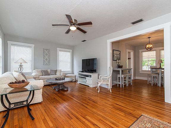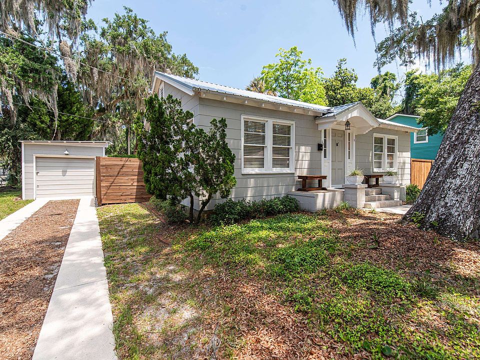 Whoever said, "good things come in small packages" was definitely talking about 15 Douglas Ave! Nestled in the highly sought-after Nelmar Terrace neighborhood, this charming cottage offers just the right blend of low-key living and convenience. Just minutes from the beach, historic downtown, and vibrant San Marco Ave, you'll find yourself surrounded by independent eateries, boutique shops, and live music venues that complement your delicious dining experiences. Whether you're dreaming of an easy second home getaway, looking to downsize and embrace a travel-filled lifestyle, or seeking an investment opportunity, this this turnkey cottage is ready to welcome you. Come experience the easy lifestyle offered at 15 Douglas Ave – a small package with myriad possibilities, living much larger than you might think. The sunny living room of 15 Douglas Ave is generously sized, offering ample options for furniture and media placement. Connected to the dining room through a double door opening, it's easy to stay engaged in conversations whether you're entertaining guests or enjoying a family meal. The bedrooms are thoughtfully located on the south side of the house, separated from the main living areas by a hallway with a door, ensuring maximum privacy and a peaceful retreat. The bathroom is a delightful fusion of vintage charm and modern updates, showcasing a fun mix of pink and white. Additionally, an extra closet in the bedroom hallway provides welcome storage space. The efficiently laid-out kitchen is tucked between the dining room and the two-tiered porch and deck in the back. There's ample room for two to work together during meal prep, making cooking a shared event. It's an effortless 10 steps to the covered 17' x 8' porch, which then steps down to the expansive 17' x 11' sun deck, perfect for outdoor dining and relaxation. The porch and patio enjoy eastern and southern exposures through the mature tree canopy the Nelmar Terrace neighborhood is known for and end-of-day gatherings bask in the golden glow of sunsets. Laundry room with 1/2 bath adjoins the covered porch. The side yard is large and ready for whatever outdoor activities suit your lifestyle. Whether it's a splash pool, a ball toss with your dog, or veggie and herb gardens, all things are possible in this sunny and fenced space. A storage shed keeps bikes, boards, and gardening tools out of sight, and a single-car garage on the Milton St side provides additional storage or covered parking for a smaller vehicle, while the driveway can hold two more cars. Nelmar Terrace is always a coveted neighborhood to call home. Enjoying a splendid assortment of live oaks, cedars, and magnolias which shade the sidewalks and where you'll meet your new neighbors out walking, biking or just porch-sitting in the shade. Welcome to your new home at 15 Douglas Ave!