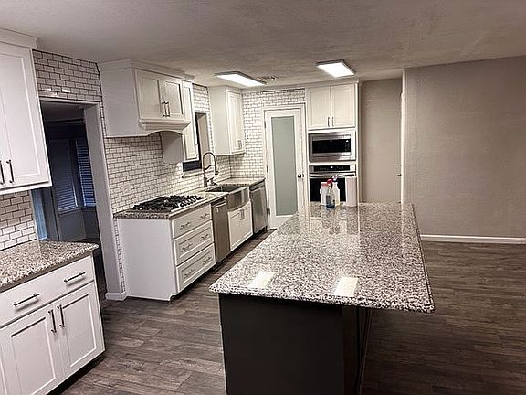 Beautiful neighborhood home close to the golf course with a pool, newer roof with high-impact shingles, oversized attached garage, heat pump, on-demand water heater, in-ground storm shelter, 3 of the 4 bedrooms have attached bathrooms, open concept with remodeled kitchen that includes granite countertops & tile backsplash, large island, built-in oven & microwave, gas cooktop & french door refrigerator.