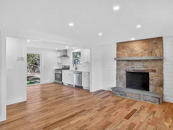 Step inside to find gleaming hardwood floors throughout and a welcoming living room with custom millwork surrounding the stone fireplace. The updated kitchen features crisp white cabinetry, stainless steel appliances, and stone countertops. The main-level bathroom has also been tastefully updated.Enjoy the ease of first-floor living with two bedrooms conveniently located on the main level. Upstairs, you'll find two additional bedrooms offering cozy retreats.The partially finished lower level provides extra living space, perfect for a family room, along with a second full bathroom.Outside, you'll love the new back patio for relaxing and entertaining, along with a lush new lawn that enhances the home's curb appeal. With updates including siding, windows, interior/exterior doors, kitchen, bathrooms, flooring, water heater, paint, and trim, this home is ready for its new owners to begin creating memories. Don't miss out on this amazing opportunity.