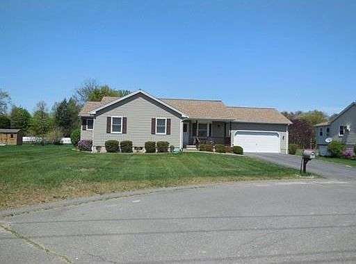 Beautifully maintained Ranch with a great location at the end of a cul-du-sac, boasting a spectacular view of Mt. Tom. Sit on the front porch and take in the mountain view, or relax on the rear deck that over looks the large back yard and agricultural land behind. It has a wonderful open floor plan with a large area combining living room, dining room and kitchen (approx. 21'x24'). There is hardwood flooring in the dining room and kitchen, first floor laundry, natural gas heat and hot water, attached 2-car garage, and a full basement offering plenty of storage space and expansion potential. Lot's of sun, offering great solar potential! You will find that this home is in absolutely "move-in condition"!!!
