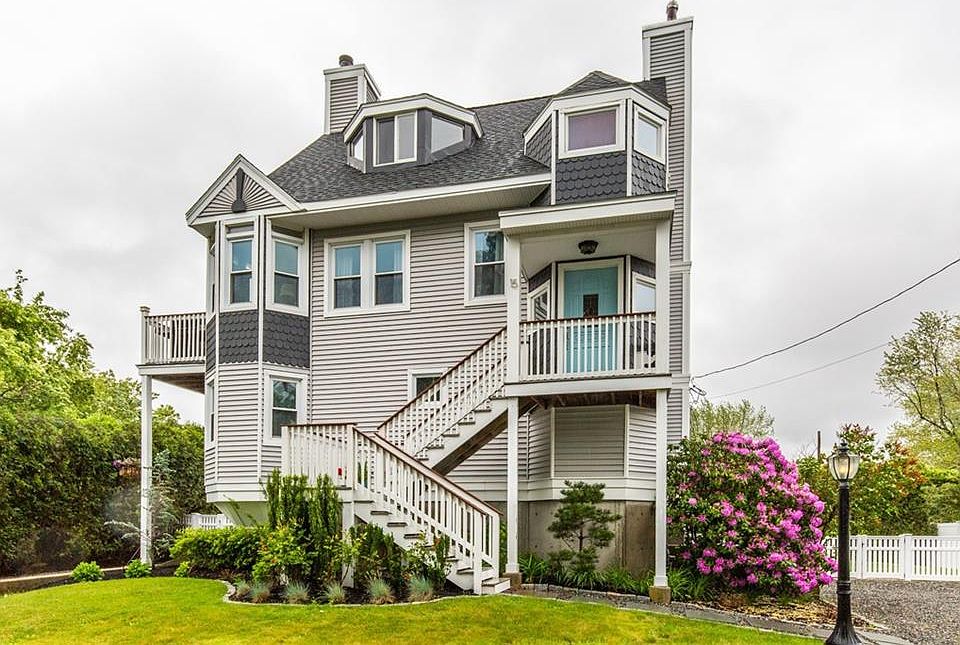 Amazing home within walking distance to the bay and a private community beach. Detail and pride of Ownership abound in this beautiful 4 Bed, 2 bath home with gorgeous views of the ocean from your top floor master suite which features a walk in closet and master bath that will leave you breathless. Home features an open concept living area on the second level which was designed for entertaining. Awesome deck overlooks your private back yard with an enormous patio and fire pit, even an outside private shower for those return trips for swimming or boating. 3 large bedrooms with a full bath on the first level compliment this totally move in ready home awaiting its new owners. Lower level has a two car garage with plenty of room for storage. A must see home just in time for summer