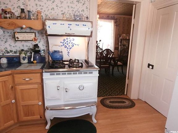 Sellers need to downsize! 7-8 Bedrooms with additional commercial property next door. Everything completely updated in 2002 for you, but they retained the original woodworking, hardwood flooring, locks and charm. Each upper bedroom includes its own sink. Other features include 3 bathrooms, formal dining, large living room, 24'x24' drive-thru garage & loop driveway, vinyl fencing & gazebo and the historic 3 level "Tithing Building". Includes .25 share irrigation water. Furnishings negotiable. Commercial building provides income of $300/month. RV parking in back with sewer connection. This would also make a great B&B!