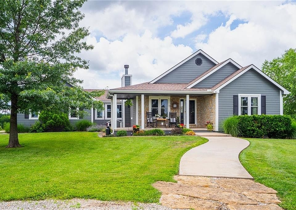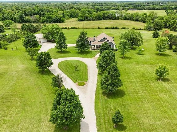 Charming ranch style home on 5 acres with a walk-out basement and outbuilding. Located just 3 miles south of Baldwin, this impeccably maintained property offers the perfect blend of comfort and style. This home boasts spacious main-level living with an inviting open floorplan layout, vaulted ceilings, and ample natural light. Featuring 4 bedrooms, 3 bathrooms, 2 laundry rooms, and a rec room with bar, plus so much more! The large, vaulted ceiling family room is complete with a wood burning fireplace, great for cozy gatherings. The kitchen, with ample counter space and cabinetry, opens to the dining room with access onto the beautiful, spacious deck, perfect for entertaining both indoors and out. The primary bedroom is complete with an ensuite bathroom, walk-in closet, and is conveniently located near the main level laundry. The expansive basement adds extra living space ideal for use as a media room, exercise area, entertaining space, or all of the above, and also includes the 4th bedroom, 2nd laundry/closet, and 3rd bathroom, great for use as a mother-in-law quarters. The basement has a storm shelter and separate entrance with a walk-out onto the cover patio and backyard access. Don’t forget to step outside onto the adorable covered front porch or back deck with amazing views, perfect for relaxing after a long day. An added bonus is the versatile outbuilding, providing endless possibilities as a workshop, extra garage space, storage, or use as a hobby barn. The back acreage has lighting and a watch stand, perfect for equine enthusiasts or for use as a track. With thoughtful upkeep inside and out, this property is truly move-in ready. For those who love the peaceful acreage, while still being perfectly located within a short distance to quaint downtown Baldwin City and Baker University, this property has it all! Located off hard surface roads and within an easy commute to KC, Gardner, Lawrence, Ottawa, and surrounding.