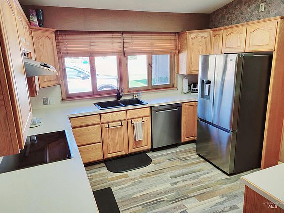 Enjoy a spectacular mountain view along with your morning coffee from either the living room’s four picture windows or on one of the two patio areas. This custom built well-maintained brick rambler is MOVE In READY! The home features 3 very spacious bedrooms each with double-closets, custom built-ins and 3 baths. There is ample storage throughout and a laundry room on the main level. The kitchen is updated with spacious counter tops, built-in stainless steel double oven, refrigerator and dishwasher, induction stove top. Large dining room and living room with a wood fireplace. The basement has a cozy family room, (w/ room for a 4th bedroom if needed) a bathroom and additional storage including food storage. New plumbing, reverse osmosis and water softener. Newer flooring, furnace/heat pump system and gutters. Outside are 2 patio areas with easy access from the oversized slider doors, auto sprinklers, several sheds, a 20' x 39' insulated woodshop & a 40' x 23' shop/ RV Storage, plus pasture w/ BID water