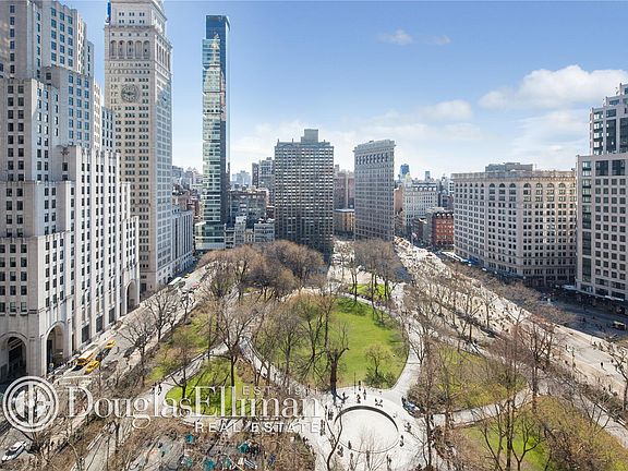 Situated in the heart of the prized Madison Park, this sprawling luxury loft condominium offers timeless elegance, space, and location. This chic and generous sized 2 bedroom plus true home office / den and 2.5 bathroom is as inviting as it is grand. Ceiling heights are in excess of 11.5ft with frontal open views of Madison Square Park. All main rooms run the entire length of the Park. Coveted and rare, these views are complimented by generous, deep set windows that provide superb Southern light and soaring Park views. The iconic Flatiron and the convergence of downtown Madison Square Park create a one of a kind experience from the standard fare. One arrives into a spacious foyer that serves as a prelude to the expansive, impeccably designed living/dining space with substantial windows to compliment the room. All bedrooms are very large with abundant closet space. The master bedroom en-suite offers a sizable walk-in closet, and both additional bedrooms are laid out well for privacy.The spa level bathrooms are appointed with Waterworks fixtures with marble and Ann Sacks custom tiles. The luxurious master bath also includes a Cambridge soaking tub and a generous glass enclosed walk-in shower. The open chef's kitchen is designed by Italian designer, "Arclinea", and offers top of the line appliances including Sub-zero, Viking and Miele. White quartz custom counter tops further compliment the space along with an over the stove pot filler, a warming drawer, a built in Miele espresso maker and a dual zone wine storage. Brazilian walnut floors throughout. Additionally, the apartment is outfitted with a washer/dryer that vents out and is wired for AV with in-wall Crestron Audio system. The apartment comes with a deeded storage room and 200-bottle wine cellar. Built in 1912, the neoclassical building was converted to a condominium and offers a full time door staff, a landscaped residence terrace, a 2 story gym, a children's playroom, a bike room and a concierge. The current common charges are: $3,050.87 plus an assessment in effect in the amount of $1,168 Broken down as follows: Capital Assessment: $1018.62 Reserve Assessment $50.13