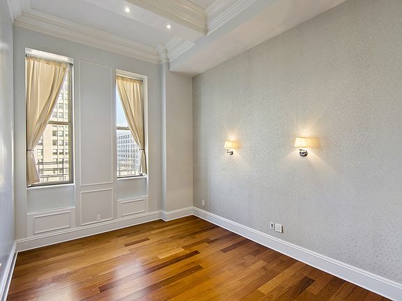 Amazing opportunity to rent the only available unit at the Fifteen Madison Square North and have Madison Square Park as your backyard. Beautifully proportioned split two bedroom with a home office and two marble baths offers soaring 15' ceilings throughout and amazing city views from the 17th floor. Light streams in through massive 7' windows and floods the apartment with a stunning glow throughout the day. This gem is one of only three split two bedroom units in the whole building, and the only apartment with such high ceilings.The 25 feet long palatial living/dining room crowned by elegant mill work and lighting is striking in scale and offers open city views. Custom chef's kitchen with capacious counters and Italian cabinetry features a Viking Range, Miele Microwave Oven and Dishwasher, Subzero Refrigerator and dual zone Wine storage. The Master Bedroom is brilliant with custom designed walk-in closet and gorgeous en-suite Master Bathroom with Waterworks fixtures, soaking tub, shower and double vanity. Second Bedroom with another marble bath, great home office with extra custom closet space, vented washer/dryer, hardwood floors throughout.Fifteen Madison Square North is the premier full service condominium located in one of the most coveted areas of New York right in front of Madison Square Park. Building Features 24-housr attended lobby, concierge, beautiful Roof Deck with breathtaking views, Fitness Center, Childrens Room, Day Care Center, and Wine Cellar with private lockers for each apartment.