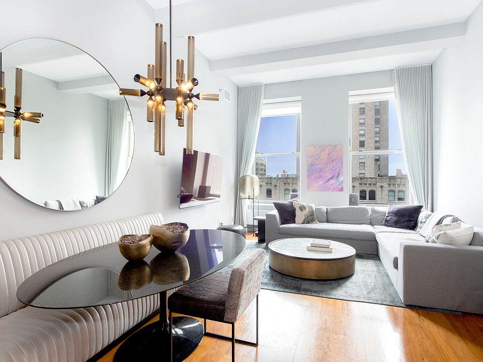 Triple mint three and a half room loft featuring soaring 12-foot ceilings, dark walnut hardwood floors, oversized new windows central A/C and sweeping East city views. The entrance gallery leads to an oversized living room with dining area. An open chef's kitchen has Viking, SubZero and Miele appliances as well as an elegant Calcutta gold marble countertop, breakfast bar and custom cabinets. The master bedroom suite has open views East, a large walk in closet and a spa like marble bath with double vanity, deep soaking tub, glass enclosed stall shower with rain showerhead. There is an additional room that can function as a home office, nursery or guest room as well as a full second bath. 15 East 26th Street, known as Fifteen Madison Square North, is directly adjacent to Madison Square Park, near Eataly, Whole Foods, the original Shake Shack, and public transit. Building amenities include a planted roof deck with views of the Empire State Building, a fitness center, wine storage and tasting room, playroom and full time doorman concierge and private storage. There is a capital assessment in the amount of $373 per month.