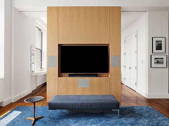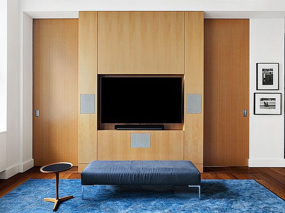 Throughout the apartment you will notice high quality renovations like beautiful pearwood paneling, custom pocket doors, a Lutron lighting system and built out closets. The apartment also has central AC, hardwood floors, motorized shades integrated into the lighting system and Sonos speakers throughout. Private Storage and Wine Storage convey with the apartment.