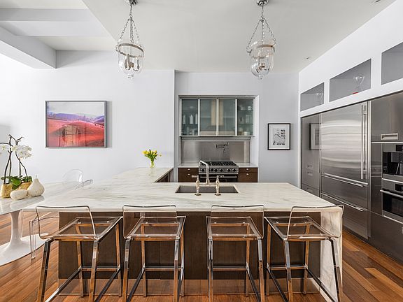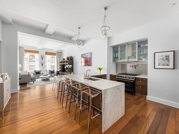 Situated in the heart of Madison Square Park, this sprawling luxury loft offers timeless elegance, space, and the ultimate in location. Built in 1912, the neoclassical building was masterfully converted to a condominium in 2006. This rare and generously sized 3 bedroom, 3.5 bath, plus home office/den is as inviting as it is grand. Ceiling heights in excess of 11.5ft are complimented by over-sized, deep-set windows that provide impressive northern exposure. One arrives into a spacious foyer that serves as a prelude to the expansive, impeccably designed living and dining space. All three bedrooms offer incredible proportion and scale rarely seen in the market with abundant closet space. The primary bedroom en-suite offers a sizable walk-in closet, and both additional bedrooms are split layout for privacy. The spa level bathrooms are appointed with Waterworks fixtures and marble custom tiles. The luxurious primary bath also includes a Cambridge soaking tub, a generous glass enclosed shower, and floor to ceiling Bianco Dolomiti marble. The open-concept, Arclinea-designed kitchen is ideal for entertaining with custom white Calcutta marble countertops and top of the line appliances including a built in warming drawer, Sub-zero refrigerator and dual zone wine storage, a Viking Professional range, and Miele espresso maker, microwave and dishwasher. Wide-planked Brazilian walnut floors are used throughout. The full service 15 Madison Square North offers a full time door staff, a beautifully landscaped residence rooftop, a children's playroom, bike room, two-story gym, dedicated storage room that comes with the unit, and a 200-bottle wine cellar with tasting room.