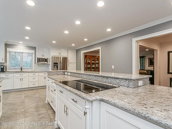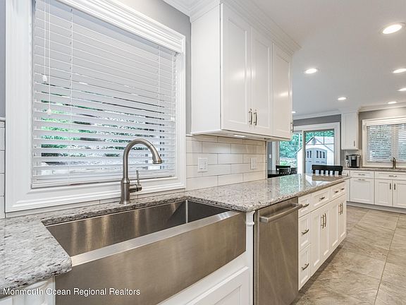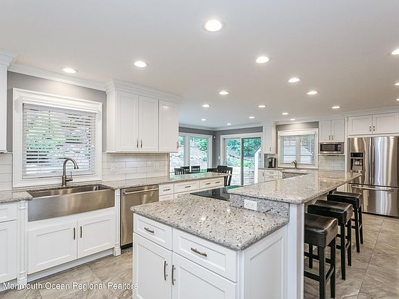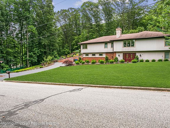 EXQUISITE ESCAPE! Stunning raised ranch with a thoughtful renovation matched by designer finishing in one of Holmdels most desired areas. Double door entrywelcomes you into the first floor offering a large foyer with built ins, a private study, full bathroom, recreation room, storage area and access to the two car garage. The upper level offers an enhanced floor plan with a large, bright living room finished with a wood burning fireplace and oversized window with beautiful views. Continue on to the formal dining and living rooms, followed by an AMAZING kitchen with no detail overlooked; including a center island, custom white cabinetry, granite counters, stainless steel appliances and breakfast area. There are 3 bedrooms and two fully renovated bathrooms with double sinks in both, as wel