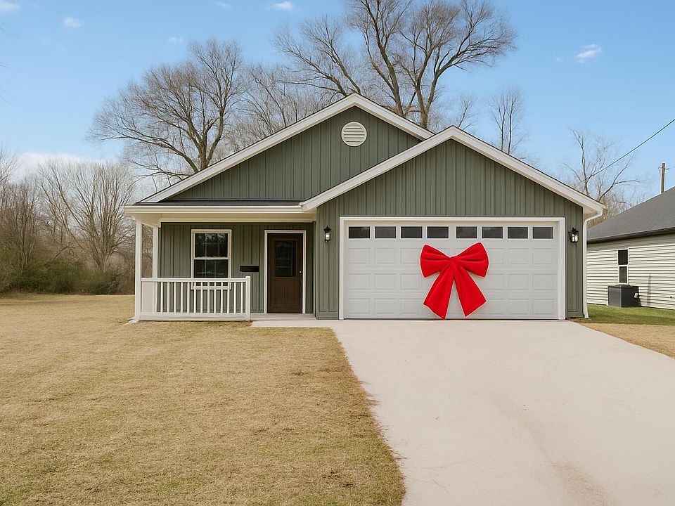 Beautiful brand-new home offering modern style and thoughtful design throughout! This 1,362 sq ft floor plan features 3 bedrooms and 2 bathrooms, highlighted by an open-concept living area with durable plank flooring and vaulted ceilings that create a bright, spacious feel. The kitchen is sure to impress with its oversized island, custom cabinets, pantry, sleek LED recessed lighting, and striking black-and-gold cabinet pulls and accents that elevate the entire space. The primary suite includes a generous walk-in closet and comfortable layout. Enjoy outdoor living on the covered back patio, and appreciate the convenience of the attached 2-car garage. Quality construction, contemporary finishes, and stylish details make this home a must-see for buyers seeking comfort, flair, and a fresh start in a brand-new space.