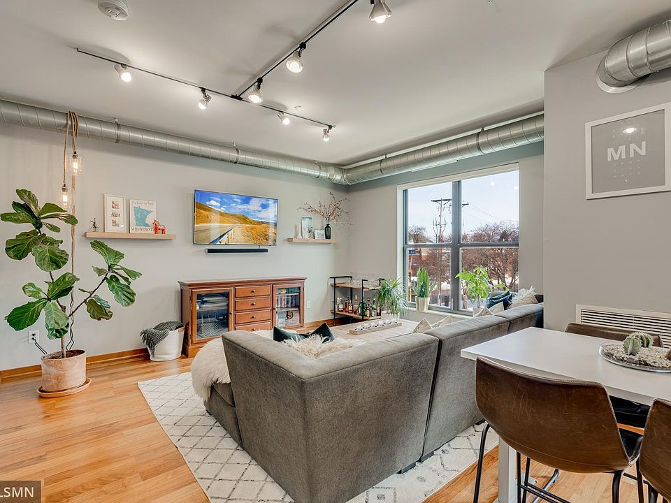 Don’t miss out on your opportunity to see this beautifully bright & well maintained one bedroom, one bathroom condo at Eat Street Flats! You’re never far from where you want to be: minutes away from both Downtown & Uptown Minneapolis, easy access to 94, and just a few steps away from your new favorite restaurants that line Eat Street. Located on the quietest spot of the building, 1st Street, and views of both the skyline and lush trees, this condo is a retreat in the city. This condo is ready to be your future home featuring stainless steel appliances with a gas range, granite countertops, hardwood floors, a spacious bathroom, & multiple storage spaces! Lighting has been updated to Smart LEDs, offering multiple color settings, and is all controlled via bluetooth.