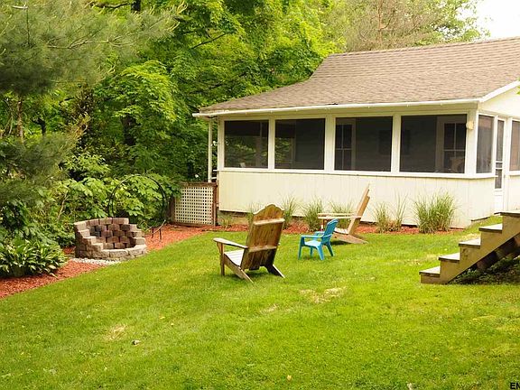 Beautiful views await you when you sit on your front porch. Enter into this well maintained home with hardwood flooring and discover it's charm. Eat in kitchen with first floor laundry. 1st floor master suite with tiled floor. Two bedrooms upstairs with full bathroom with tile. Enjoy plenty of storage throughout this home. Want to relax more? The back yard features a 3 season porch and a deck with spa. Perfect for unwinding after a difficult day. Over a third of an acre lot with garden and landscaping.