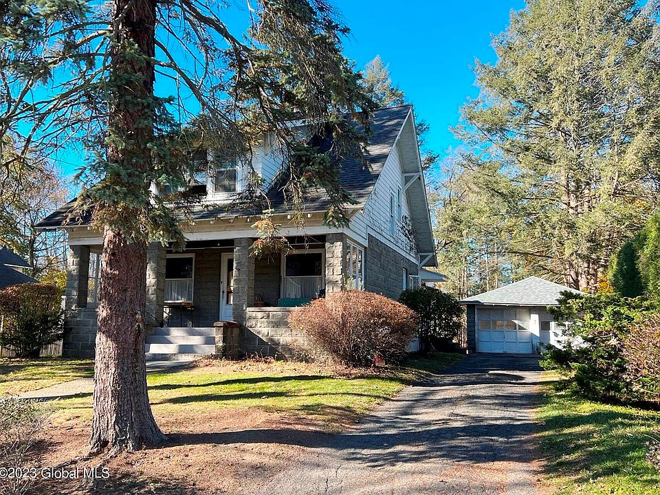 Great neighborhood setting for this 4 BR, 2 BA charming home on a deep, .6 acre lot in E Greenbush School District. Convenient to shopping, restaurants, I-90, 787 & downtown Albany. Offers 2 car det garage with newer roof, spacious front porch, newer side steps, and a newer deck. Roof apporox 2007, nat gas hot water heat, updated 200 AMP electric. 1st flr BR, full BA, and mud rm/ laundry rm rehabbed with new insulation & walls, windows, exterior doors approx 4-5 yrs ago; laundry closet w/ newer washer & dryer and utility sink added. Offers HW floors, new kitchen vinyl flooring, original swinging doors, formal DR, full basement. 2nd floor has 3 additional BRs with walk-in closets as well as the 2nd full bath with a tub. Wood-burning FP in the living room not in use and as-is.