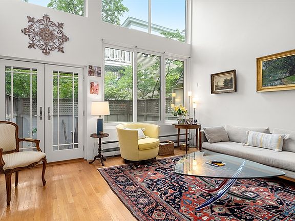 Upon entering this contemporary home, the foyer offers a double closet and direct access to the roomy attached garage, plus a tucked away office/guest room. The main living level showcases a sunken living room with a double-height ceiling and French doors to the large enclosed patio & garden. There is also a dining room and efficient kitchen on this level. Upstairs, the landing with a built-in bench overlooks the living room and leads to a bedroom with a wall of closets and hall bathroom with laundry. Up another flight of stairs is the second bedroom with a large closet. The top floor houses the 21' primary bedroom with a wall of closets, en-suite bath, and sliding glass doors to the expansive roof deck. Located just around the corner from the beloved Joan Lorentz Park, Cambridge Public Library, Cambridge Rindge & Latin School, tennis courts, and the War Memorial Recreation Center & Pool. Only 5 blocks to Harvard Square, and a straight shot down Broadway to Kendall Square.