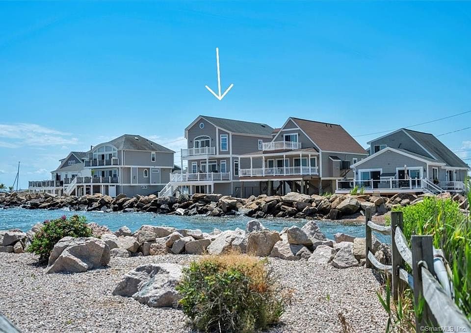 WELCOME to an Extraordinary, DIRECT WATERFRONT LIVING AT IT'S BEST. This 3-story Colonial built in 2010, offers beach front living with "Picture Perfect Million-dollar Views" that will take your breath away. This remarkable home features a convenient, modern elevator that takes you into an open and spacious, gourmet kitchen with custom kitchen cabinets , soft close and pull-out racks. Spectacular granite counters, ceramic tile backsplash, stainless steel appliances with a commercial sub-zero refrigerator, Bosch dishwasher, gas cook top and a warming drawer. Impeccable details feature a multi-zoned heat and central ac, crown molding and hardwood floors throughout, recessed lighting, custom blinds, central vac and two gas fireplaces. The living room offers an open and bright floorplan concept which are perfect for entertaining. The upper level has very spacious bedrooms; enjoy the gas fireplace on those crisp fall evenings, listen to the waves rolling in from LI Sound or just watching the gleaming sunrises and sunsets from your bed. This beautifully maintained home has 2 expansive decks off the main living area and the primary bedroom for those incredible summer nights. In addition, the lower patio features your own private, sandy backyard. A short ride to Metro North/New York City train, Tweed Airport, downtown New Haven, Yale University and hospitals. Close to amazing eateries and Silver Sands Beach Club. .Be ready to fall in love!!! PROFESSIONAL PHOTOS COMING SOON!! This beautiful 3-bedroom features structural engineering, it was featured as a model for other East Haven waterfront homes. It has breakaway ground level walls, 15 poles, submerged 45' into the earth and connected to concrete grade beams which are 14' above sea level. Multiple Azek decks from the main floor and the Primary Bedroom provide stunning views of Long Island Sound and Caroline Creek.