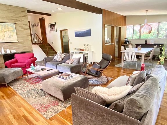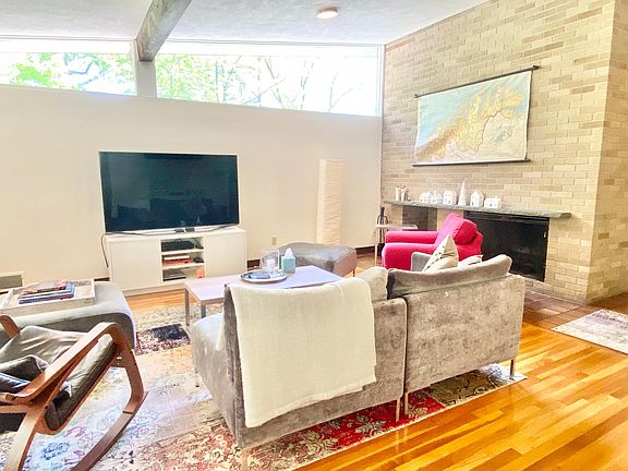 Mid-Century Modern living in highly desirable West Newton Hill. 5 bed/2.5 bath contemporary single family home is one of a kind. Bright & spacious family room with fireplace open to the dining area and 3 season porch which overlooks beautiful views of the lush backyard. The kitchen includes stainless appliances, dishwasher, disposal & microwave as well as large windows which let in plenty of sunlight. All 5 bedrooms are a good size & offer large closets with closet systems, including the master, which also includes its own modern en suite full bathroom. This home can also be set up to include an "in-law" living area as 2 of the bedrooms have the option to flow into each other. Other amenities include: Hardwood floors throughout, central AC, 2 car garage, laundry room with sink & large machines as well as basement storage. The bi-level patio, large level yard & breathtaking views add to the character of this home. Located less than 1/2 mile from Newton North High School, 1.2 mi. to both West Newton and Newtonville Commuter Rail, restaurants, shops & more! Pets considered on a case by case basis. No smoking, Strong credit - a must. Please text Kristin for a video tour and to schedule a showing. Available August 1, First/Last/RE Fee. Available August 1, First/Last/RE Fee.