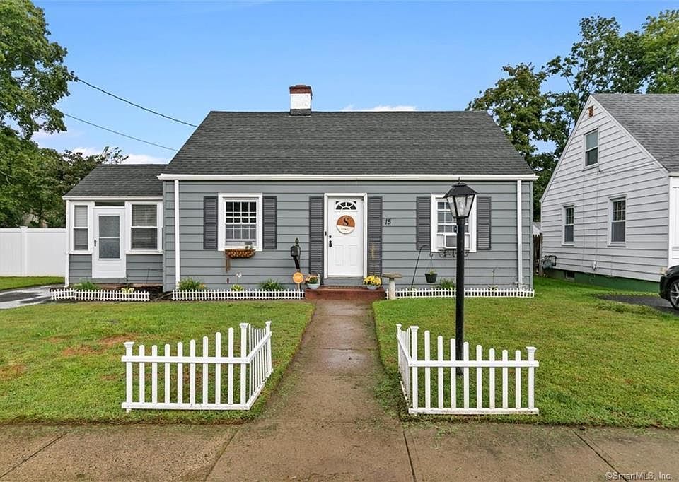 Welcome to this charming and inviting 3 bedroom cape-style home! Step inside and discover a beautifully updated kitchen featuring quartz counters, new LVT flooring, a farm sink, subway tile backsplash, and an eat-in area with a large window that floods the space with natural light. The living room boasts a cozy fireplace and elegant coffered ceilings, complemented by new carpeting throughout. Enjoy the comfort of a 4-season sunroom, perfect for relaxing and enjoying the views of the well-maintained backyard. The bathroom has been recently updated with a sleek glass surround, adding a modern touch. On the main level, you'll find a convenient bedroom with a spacious walk-in closet and beautiful hardwood floors. Additionally, there is a main level office area with a laundry section for added convenience. Head upstairs to find two bedrooms in a tandem layout, offering versatile living arrangements. The home features a newer roof, ensuring peace of mind for years to come. Step outside and be greeted by a gorgeous, completely fenced yard, showcasing a delightful inground pool and a patio area with a firepit - perfect for entertaining family and friends. This home also comes with a new oil tank, adding to its value and efficiency. Don't miss out on the chance to make this cozy and adorable cape your own. Owner extended closet in primary removing part of the other bedroom, can be converted back for a small 4th bedroom. Needs new pool liner. Pool liner has been patched. Patches work fine.