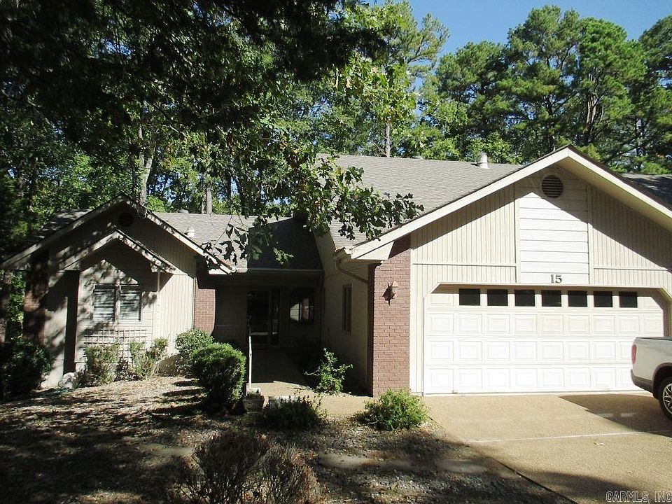 Beautifully maintained one level townhome with oversized 2 car garage. Privacy from back deck with views of trees and the sound of a babbling brook. 3 Bedroom Room, 2 Bath, split bedroom plan offers so much space for 1658 sq. feet. High volume ceilings, hardly no hallways, open plan with vaulted living-dining and kitchen combined. Laundry room, eat in kitchen, wood flooring throughout except guest bedrooms. Brick gas fireplace. Following items have been replaced or added: hvac/roof/granite counters/sunpipes, wallpaper in master bath, wood flooring living, dining, master bedroom, tile floors in master bath & kitchen, carpet in both guest bedrooms. TH Dues $104 includes garbage, POA Dues $100 monthly. No Seller's Property Disclosure . Refrigerator, washer-dryer included in "as is" condition. All these wonderful features for $249,500-