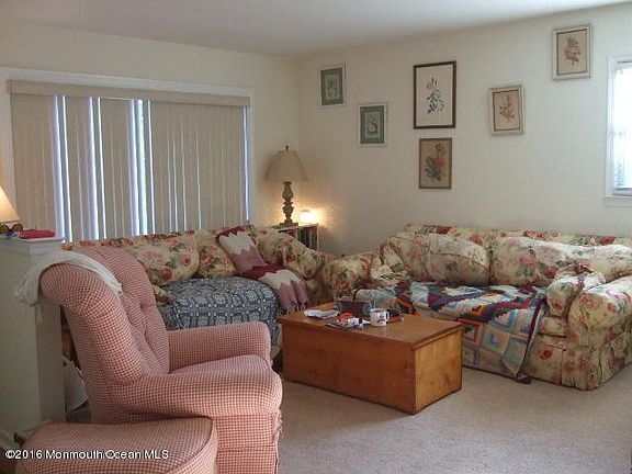 Lovely area,close to shopping,a few minutes to garden state parkway. 2 nice sized bedrooms and 2 full baths. Plenty of cabinets in kitchen, separate dining room, spacious living room. Nice deck off back of home, backs up to unbuildable woods.New furnace, roof and windows are 10 years old.There is a heated community pool with outside showers and bathrooms open from May to September. Umbrella tables and lounges are already there, just bring your towel and enjoy! Clubhouse has TV, internet and pool table. There is also a large room with bar and kitchen overlooking the pool upstairs for parties and get togethers.The scenic Barnegat Bay & bathing beach is a mile down the road. Lifeguard on duty in the summer,boardwalk,park benches,and gazebo. Or go to the barnegat dock where you can fish, crab all week. Listen to free concerts on the weekend.There is another boardwalk, park benches, a 2 story gazebo to look over the bay to the Barnegat Lighthouse! You may also want to launch your boat & go sailing!A wonderful town with it's own elementary, middle and high schools, What a great place to live!!!