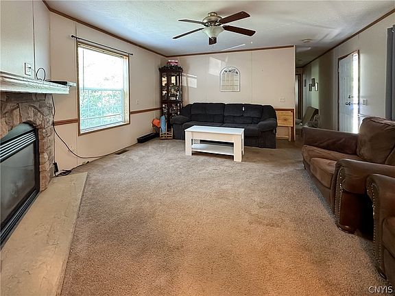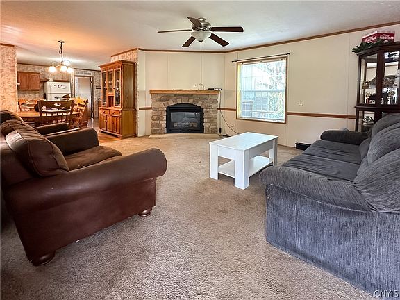Spacious 3-bedroom mobile home offering the perfect blend of comfort and convenience! You'll love the open floor plan which seamlessly connects the living room (with gas fireplace), dining area, and kitchen, creating a welcoming space for gathering and entertaining. The eat-in kitchen with center island and dishwasher offers ample counter space and plenty of storage. The primary bedroom features a large en-suite bathroom for added privacy and convenience, while two additional bedrooms share the second full bathroom. Park rent is $400 a month and includes water all taxes and trash pickup. NEW ROOF-2022. All this home needs is a little TLC and your finishing touches! Come take a look!
