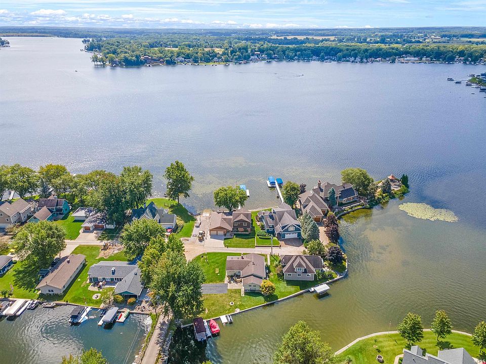 Easy elegance w/breathtaking views, many updates & spectacular all seasons room facing 75’ of waterfront on popular all-sports Lake Tippecanoe —luxury living at its finest! Elite location on quiet island allows you to bask in amazing sunrise & sunset views all year round! This 4 bedroom, 3 full bath 2-story has been meticulously maintained w/obvious pride of ownership & recent improvements including new roof w/gutter guards, flooring throughout, interior repainted, exterior remodeled, large 45'X14' 3 season porch added, all new kitchen (cabinets, appliances minus fridge), can lights installed (living & dining), 220 outlet in garage for EV & east garage door opener replaced all within last 4 years allowing you to move in immediately & make most of remaining warm weather! Sure to charm from moment you arrive, attractive exterior is mixed materials w/ lots of brick, lush green lawn, professional landscaping, covered entry & attached 2 car garage w/oversized drive. Inside front door w/beveled glass sidelight you’ll find warm & welcoming atmosphere complemented by gorgeous wood flooring, plenty of natural light & neutral color palette serving as blank canvas to your own personal style. Front living/sitting/dining room has big picture windows & multiple closets—perfect for entertaining or flex use! Head back to inviting family/kitchen area featuring stunning lake vistas; cozy family nook w/sliding glass doors to walk-out enclosed porch. Refreshed kitchen has abundant cabinetry, hard surface counters, built-in hutch & long central island. Step into magnificent sunroom w/ wood ceiling & white paneled walls against brick of house giving classic lake vibes alongside sweeping panoramic water views, sure to be favorite place to unwind or savor your morning coffee! Generous main floor primary has private access to porch as well as ensuite bath w/walk-in shower. 2nd main floor bedroom also works as home office or den as needed. Main floor full bath has dual sink vanity & tub/shower combo. Upstairs is bonus landing/lounge area w/ space for seating or extra beds. 2 more comfortably sized bedrooms up here along w/ final full shared bath w/ tub/shower combo & ample storage at every turn. Fantastic lakefront concrete patio offers shade & exquisite tranquil setting for relaxing & enjoying your peaceful realm. Sizable yard w/ pier included! Next to neighborhood boat launch. Note: home is not in flood zone. Is lake life calling your name? Don't let this one slip away!