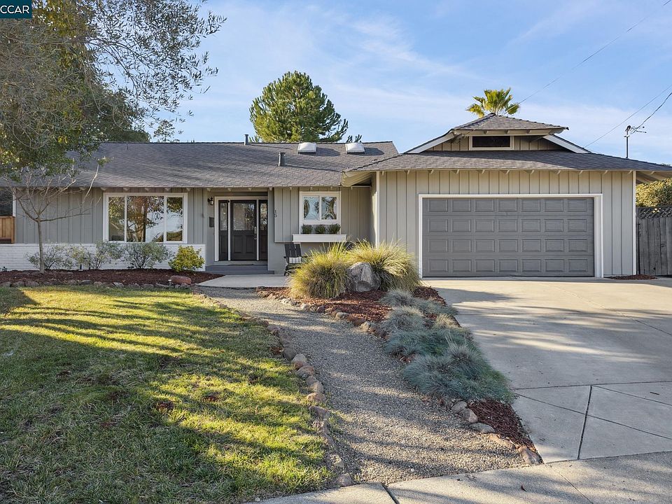 An Elegant Oasis in Pleasant Hill! This stunningly updated single-story home on a cul-de-sac, with a pool, is the one you have been waiting for! When you enter the home you are immediately greeted with the soaring ceilings of the family room, and an abundance of natural light pouring in through all the windows. With an ideal floor plan, the kitchen opens up to the family room so family members, hosts, and guests can stay connected and all can join in the fun. For an added touch of luxury, the home is equipped with a built-in surround sound speaker system. Step outside to your private backyard paradise—an entertainer’s dream with a sparkling swimming pool surrounded by lush palm trees. Whether you’re hosting poolside gatherings or simply unwinding in your own retreat, this backyard provides the perfect setting. There’s also a spacious grassy area, and possible ADU potential in the side yard area. From the kitchen window, enjoy picturesque views of Mount Diablo. Other features include hardwood floors, a new roof, central AC/Heat, and an attached garage. The location can't be beat - around the corner from Paso Nogal Park, and it's just a few blocks away from award top rated schools, restaurants, and shopping. Close access to the hwy, Lafayette, and Walnut Creek.