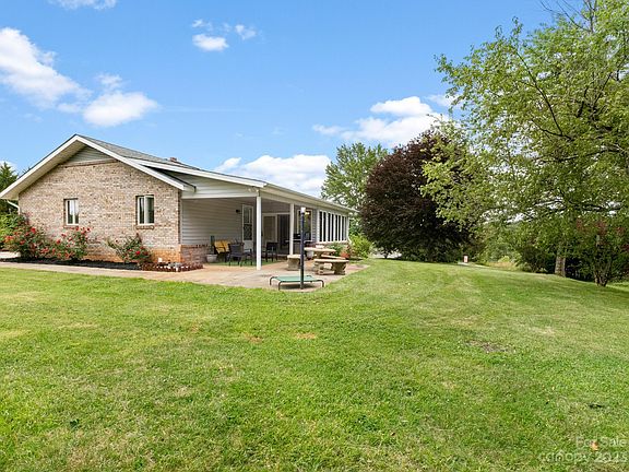 Peaceful, country setting just 15 minutes from downtown Asheville. Privately located at the end of a road with no through traffic. Usable 1 acre yard with long-range mountain views. Mostly brick home with Anderson casement windows. Vaulted ceiling in the great room with abundant natural light & a brick wood burning fireplace. New HVAC & flooring throughout. Large sunroom with access to a covered patio. Oversized single-car garage on main & ample parking on the driveway. Additional garage in the basement, great for yard equipment & projects. 717 unfinished SF in the basement with 270 heated SF office, a half bath & private exterior entrance (not included in the total heated SF).