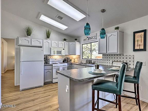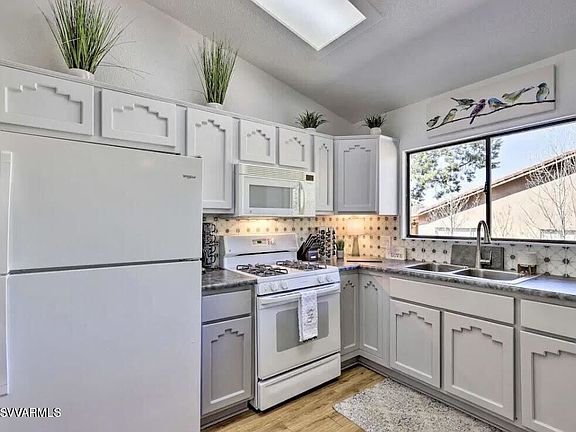 Delightful Fresh Home! Immaculate condition in the Heart of West Sedona with no HOA. Contemporary design, Vaulted Ceilings. Wood & Travertine Flooring, New Counter Tops, New window treatments, New AC. Rare split floor plan for extra privacy. New Bathrooms-tub, showers, cabinets, tile, mirrors, Secondary bedrooms mirrored closet doors, etc. Oversized .22 acre treed corner lot. Large Covered Trek Deck w/new railing, red rock peek-a-boo views of Thunder Mtn. and great for sunset dining . The perfect Sedona Retreat!