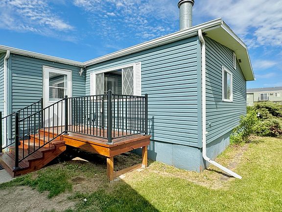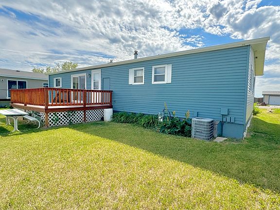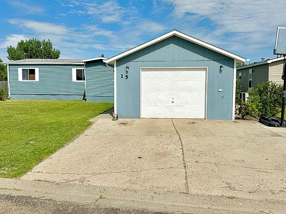 Located in a quiet cul-de-sac close to the school! This home features 3 main-floor bedrooms, which includes a master bedroom with 1/2 bathroom, a full bathroom, a living room, shared dining room with attached kitchen, along with 2 decks for your entertaining needs! All appliances within the home will convey to the new owners. The front yard offers a detached 1-car garage. Fresh paint and new flooring throughout the interior of the home, as well as fresh stain on both front and back decks. This home has a ton of potential! Call Ali to schedule your private showing today. Address: 15 Estate Drive, Bowman, ND Lot Size: 8100 sq. ft. Legal: Lot 7, Block 1, NW Estates, City of Bowman Parcel #: 35-0022-06967-000 Taxes (2023): TBD Property Information: Built: 1980 Style: Manufactured Home Total Living: 1344 sq. ft. Total Bedrooms: 3 Total Bathrooms: 1.5 Living Room: 1 Kitchen: Galley Main Level Appliances: Refrigerator, Oven HVAC: Natural Gas Forced Heat/Central AC Garage: Detached 1-Car