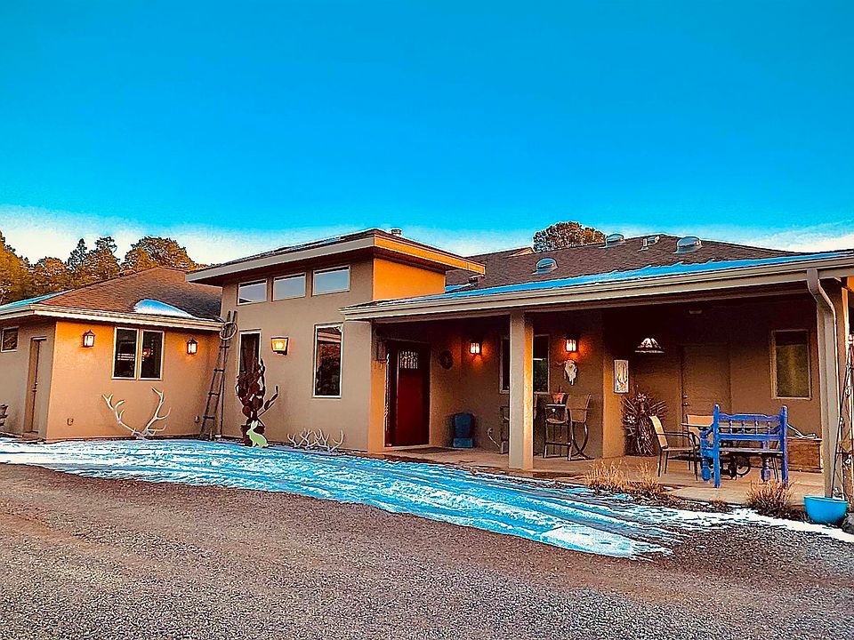 Custom home on 30 acres minutes from town and made for entertaining, just down the road from Pinos Altos. Secluded 2BD, 2.5 BA, open floor plan w/ sunroom/bonus room. Large welcoming living area has vaulted ceiling w/ operational clerestory windows, wood stove & ceiling fans. Huge chef kitchen w/ large island that is the hub for gatherings. Primary bedroom is spacious, including door to outside patio, large walk-in closet, grand bathroom w/ lots of light, double sinks, jetted tub, walk in shower & private toilet room. Second bedroom is set up for guest or home office with murphy bed, separate entrance & private bath. Sunroom is additional entertaining space w/ access to back brick patio through French doors. Home has solar on the house and well house to keep the all electric home expense to a minimum. There are 2 large dirt seasonal stock ponds on this beautiful, one of a kind, rural property. Non-vehicle forest access is just up the road. Furniture available. Broker related to seller.