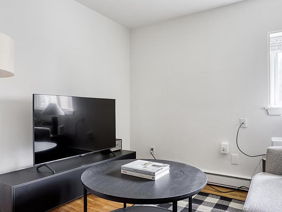 Sunny 2nd flr unit, 12X18, Large, hdwd flrs, recessed lighting, modern K&B, some pets OK with permission, off-street parking available $125/month, A/C, laundry in bldg. Cats ok, dogs negotiable, no aggressive breeds Just first and last month's rent to move in.