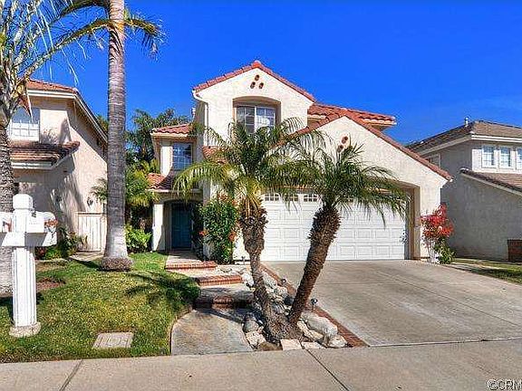Fantastic Opportunity to live in the highly sought-after hillside community of Foothill Ranch!! Sellers have priced this home to SELL FAST!! Charming inside and out. Great floor plan featuring 4 bedrooms, 2.5 baths, family room with fireplace, media alcoves and 1,900 sq. ft. of comfortable living space. Open floor plan with cathedral ceilings, warm designer colors, and neutral d?cor thru-out. Appointments include wood blinds, mirrored wardrobes, ceiling fans, upgraded light fixtures, and upgraded downstairs powder room. Spacious kitchen with two-level Corian island, stainless steel appliances, pantry, oak cabinetry, and a breakfast nook. All bedrooms are upstairs boasting a roomy master suite with vaulted ceilings, ceiling fan, walk-in closet, dual sinks, separate shower, and a romantic Roman tub. Tropical landscaping gives the backyard a relaxing vibe with a covered patio for entertaining, and a large grass area - perfect size for a pool. Close to shopping, dining, theaters and award-winning Blue Ribbon schools. Whiting Ranch Wilderness Park is close by for your afternoon bike ride or hike. Hurry on this one!!