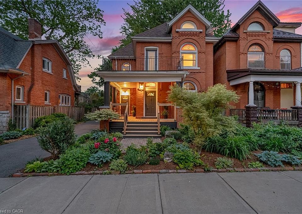 Beautifully upgraded century home in the highly sought after Kirkendall South neighborhood. This turnkey legal duplex features upgraded finishes, high ceilings, and preserved stained glass windows. Primary upper unit offers a stunning renovated kitchen (2024) with quartz countertops, new cabinets and appliances. The unit has updated flooring, trim, hardware and has been professionally painted throughout. The spiral cast iron staircase leads you to a bright loft-style primary bedroom complete with its own private walkout balcony. The lower level unit offers its own character with original maintained hardwood flooring, large kitchen island, high ceilings, and lots of natural light. Ideal for extended family or rental income. Situated on an extra deep lot, the home offers ample garden and outdoor space, complete with a spacious front porch, three private balconies, and covered patio, there's no shortage of outdoor space. This home has been meticulously maintained, recent upgrades include; new high efficiency Lennox furnace & heat pump (2023), chimney & brick repointing (2023), new furnace exhaust stack (2023), sound/fire-rated insulation between units on main level (2024), professional painting (2025), upgraded front entrance deck (2025). This one-of-a-kind property is steps to Locke Street, parks, schools, shops, major highways, and transit. Perfect for investors, multi-generational living or anyone looking for a truly special home in one of Hamilton's most desirable neighbourhoods.