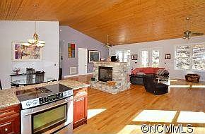 Inviting custom contemporary in exclusive private setting just 20 minutes from town, but a wonderful world away! Fabulous great room with cathedral spruce ceiling, central 2 sided fireplace, and tons of light. Hardwoods throughout main areas, granite/stainless kitchen and custom cabinetry. Terrace level family room plus office with huge closet. Great deck overlooks low maintenance custom landscape. Meticulously maintained! NC Broker/Owner