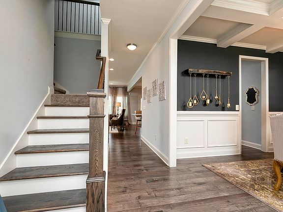 Close-out! $10,000 builder incentive plus $2,500 pd in buyer closing costs w/preferred lender. Can close Quickly! Gorgeous Model Home w/all the Bells & Whistles. Rocking chair front porch & light filled family room & kitchen. Beautiful coffered ceilings in dining room, Full SS appliance package & Granite in Kitchen, Hardwoods on main floor & full finished basement. Huge master suite & tiled bathroom w/separate tub & shower is a true retreat! Decorator iron railings, Plenty of storage in the walk in closets, Designer appointments through out - Too many upgrades to list.